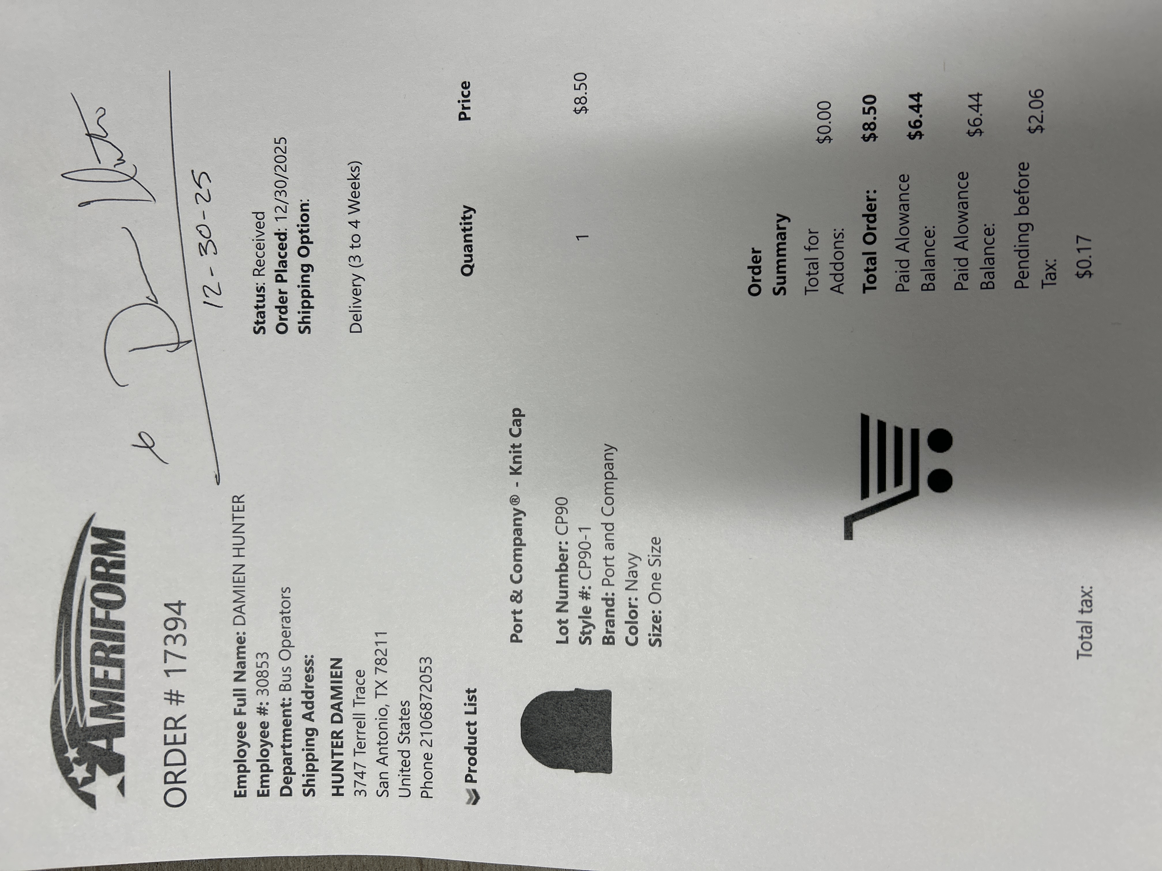 Order # 17394
