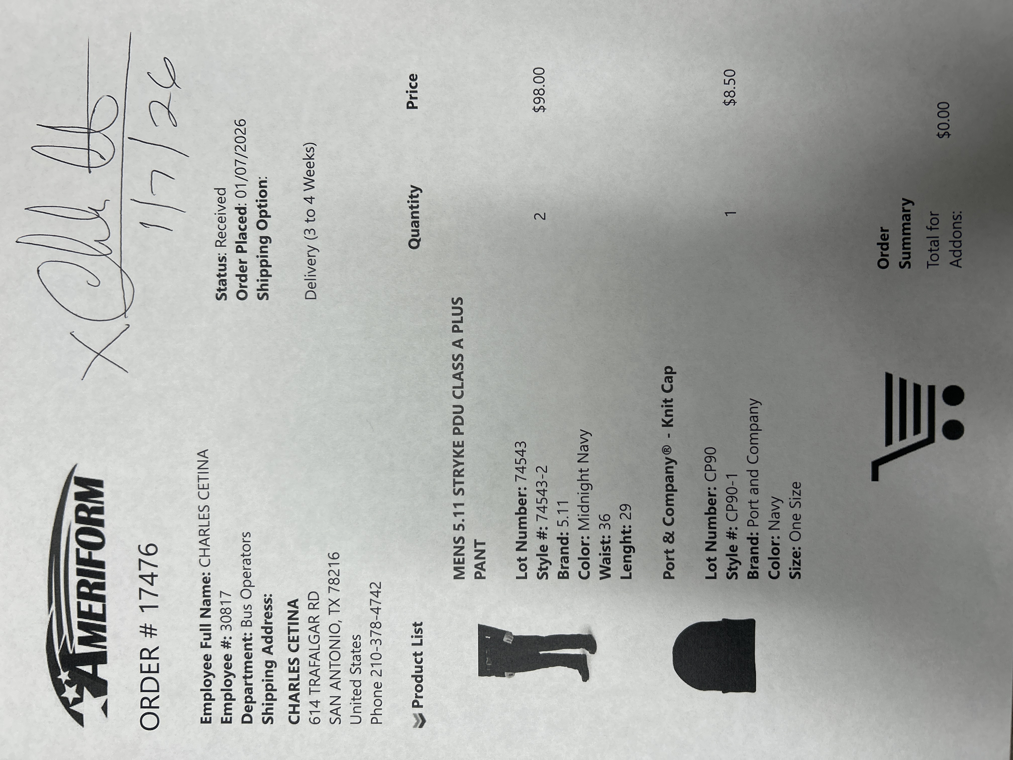 Order # 17476