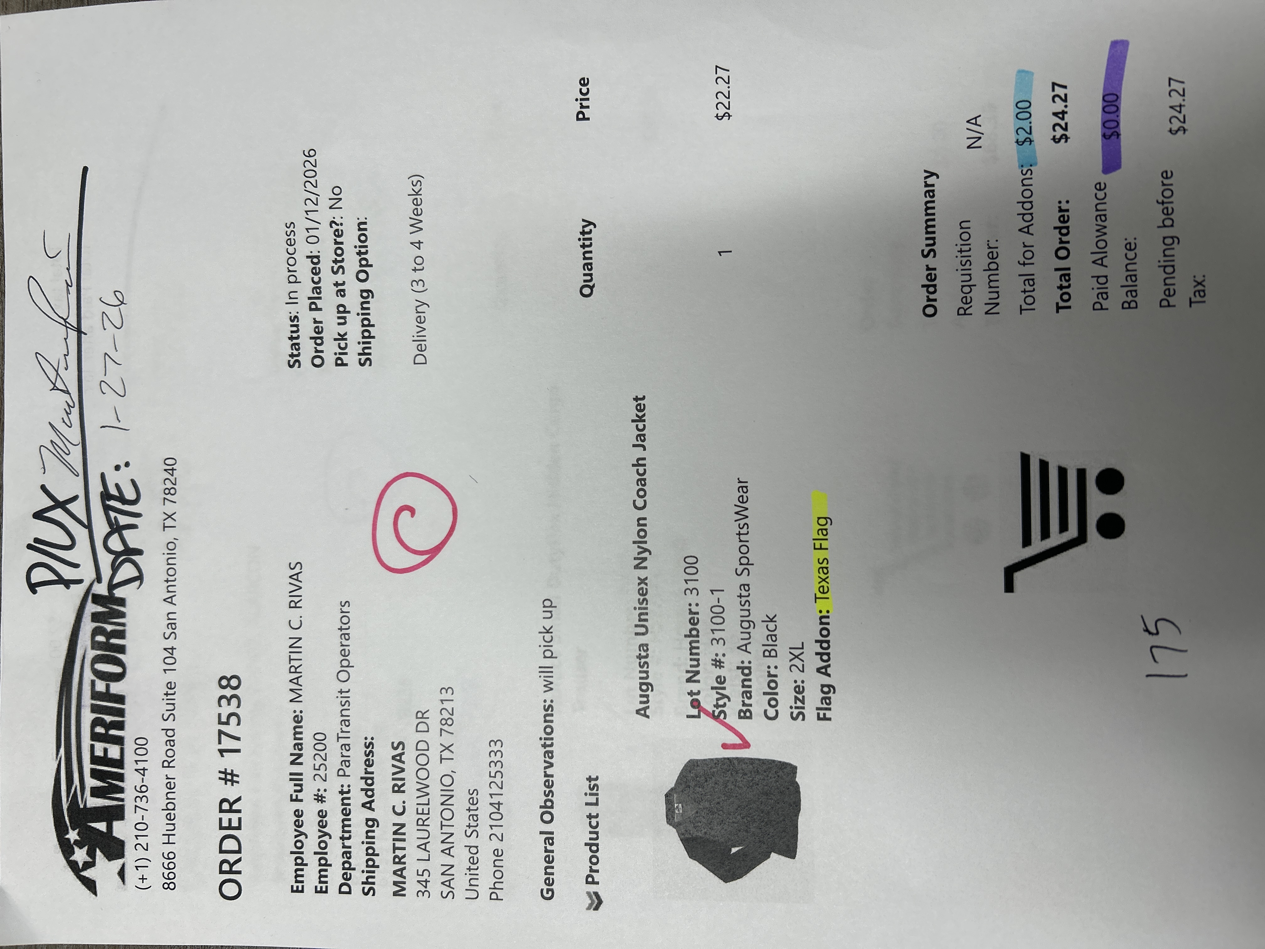 Order # 17538