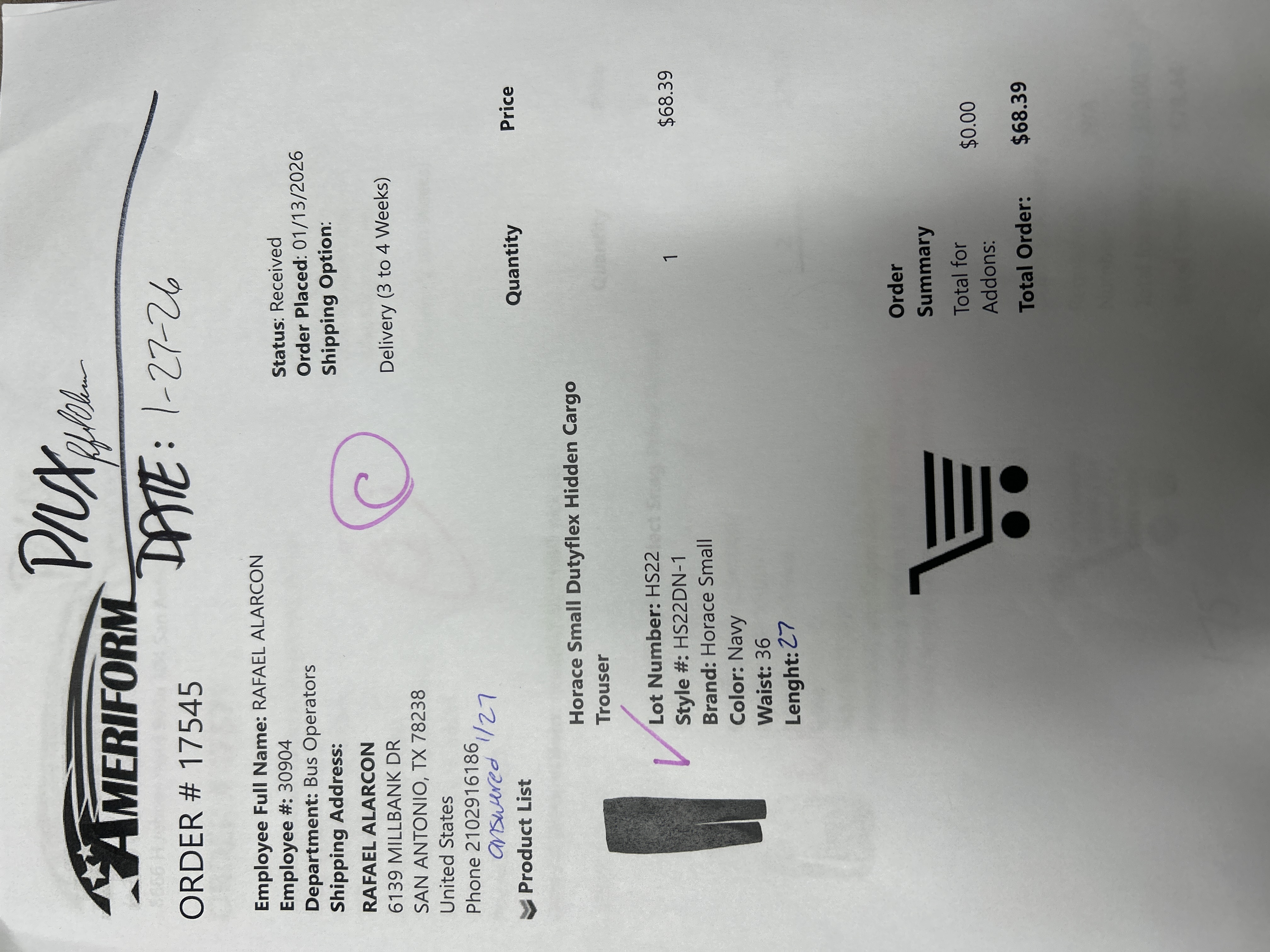 Order # 17545