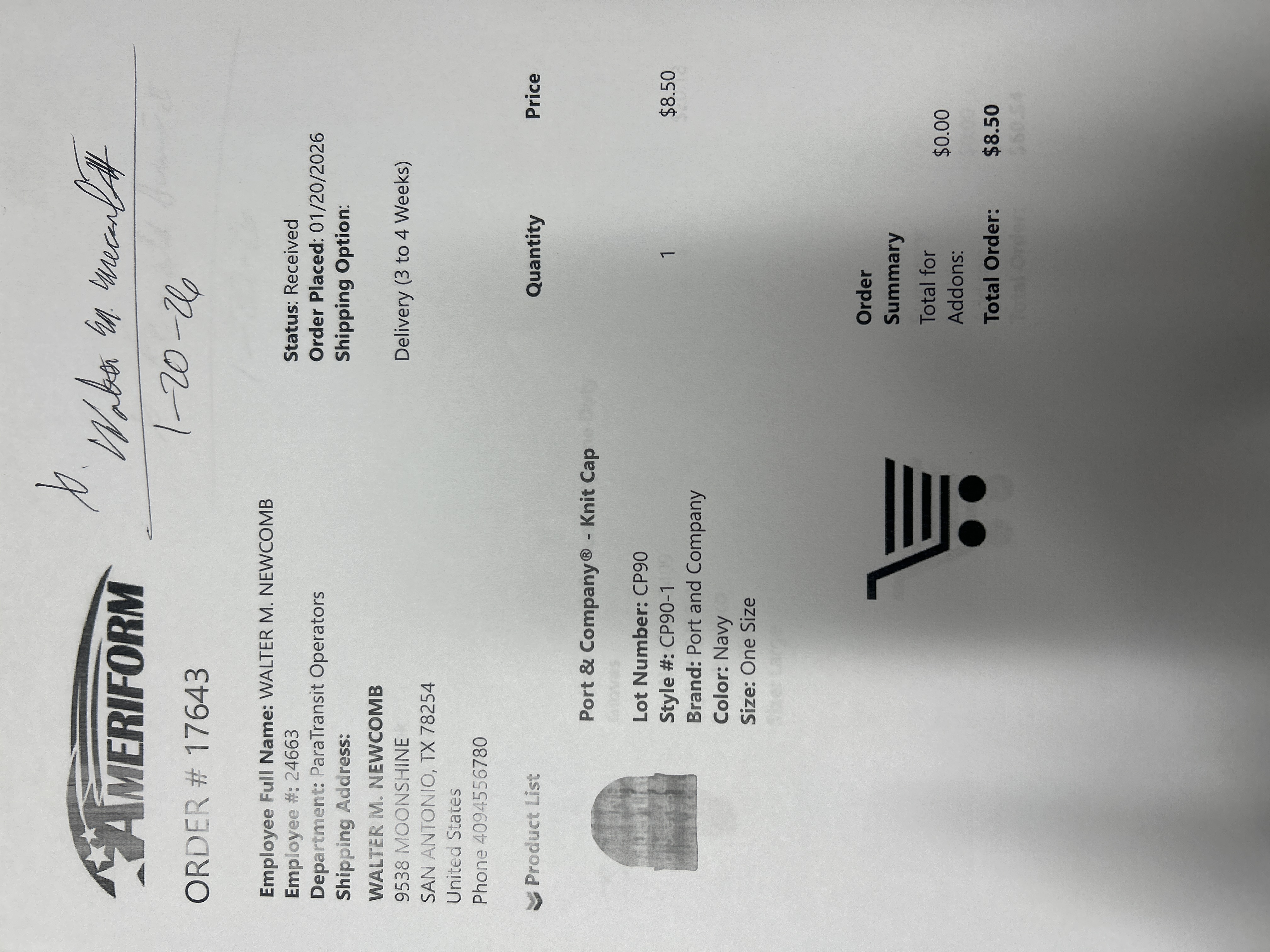 Order # 17643