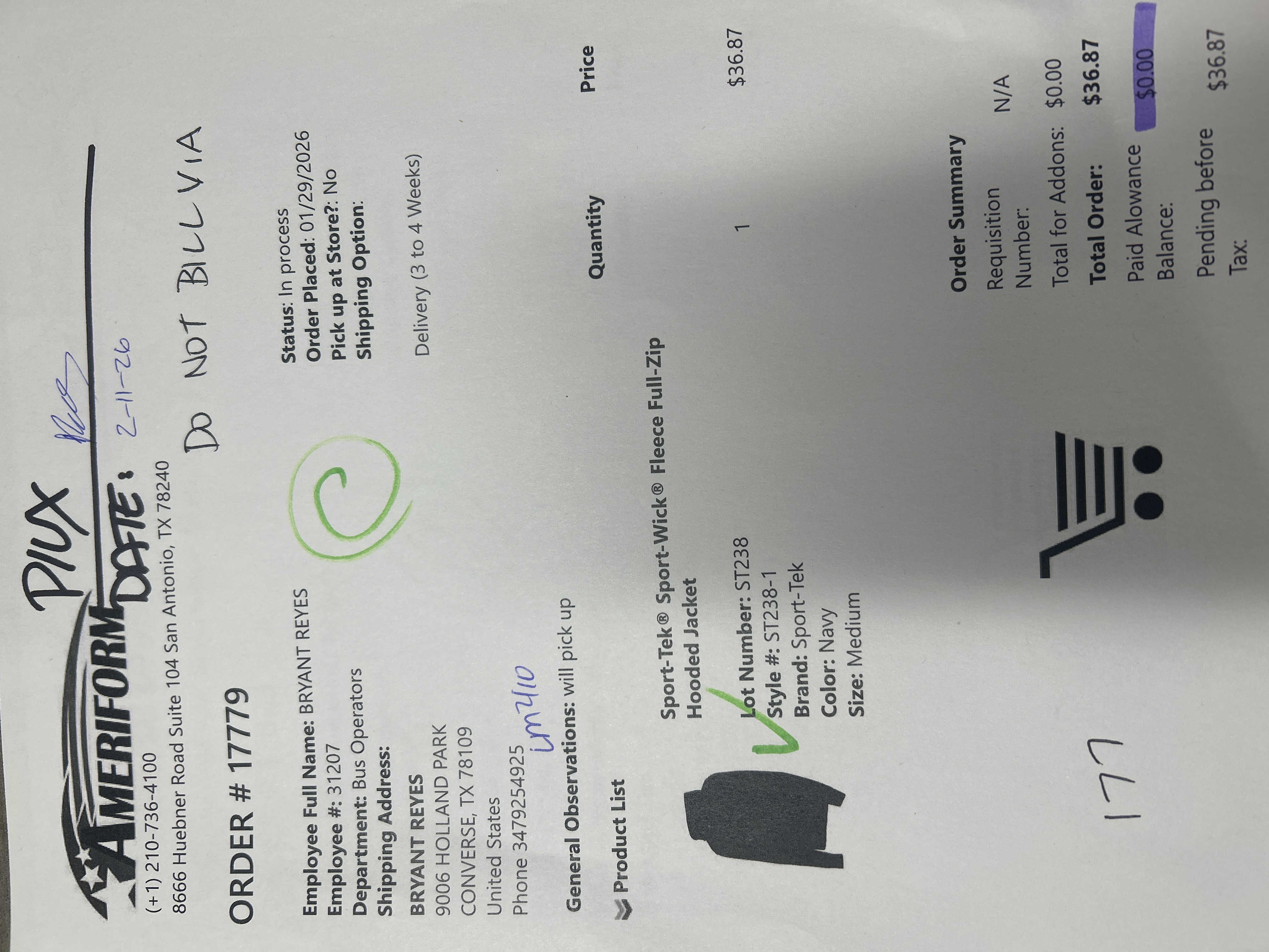 Order # 17779