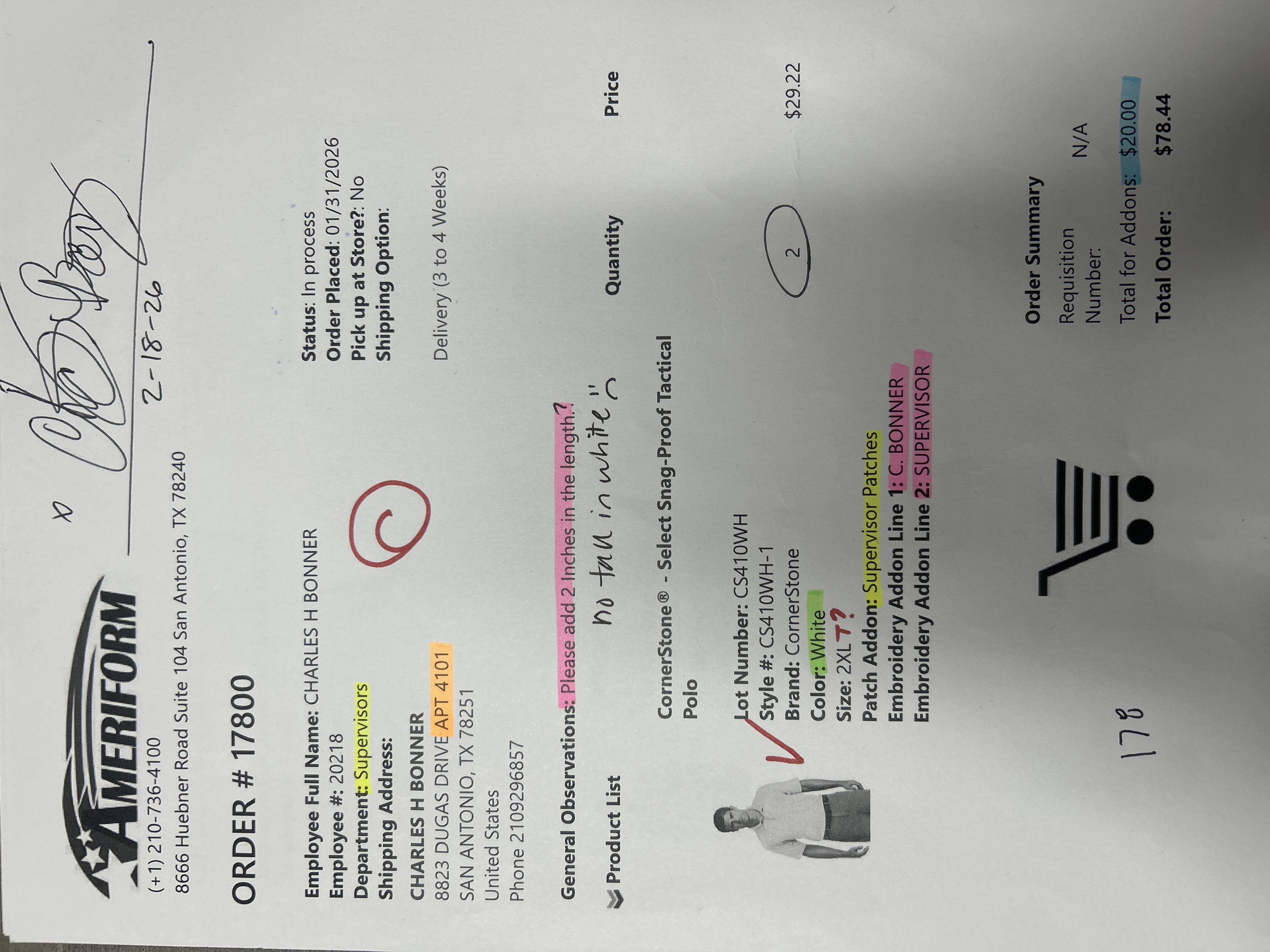 Order # 17800