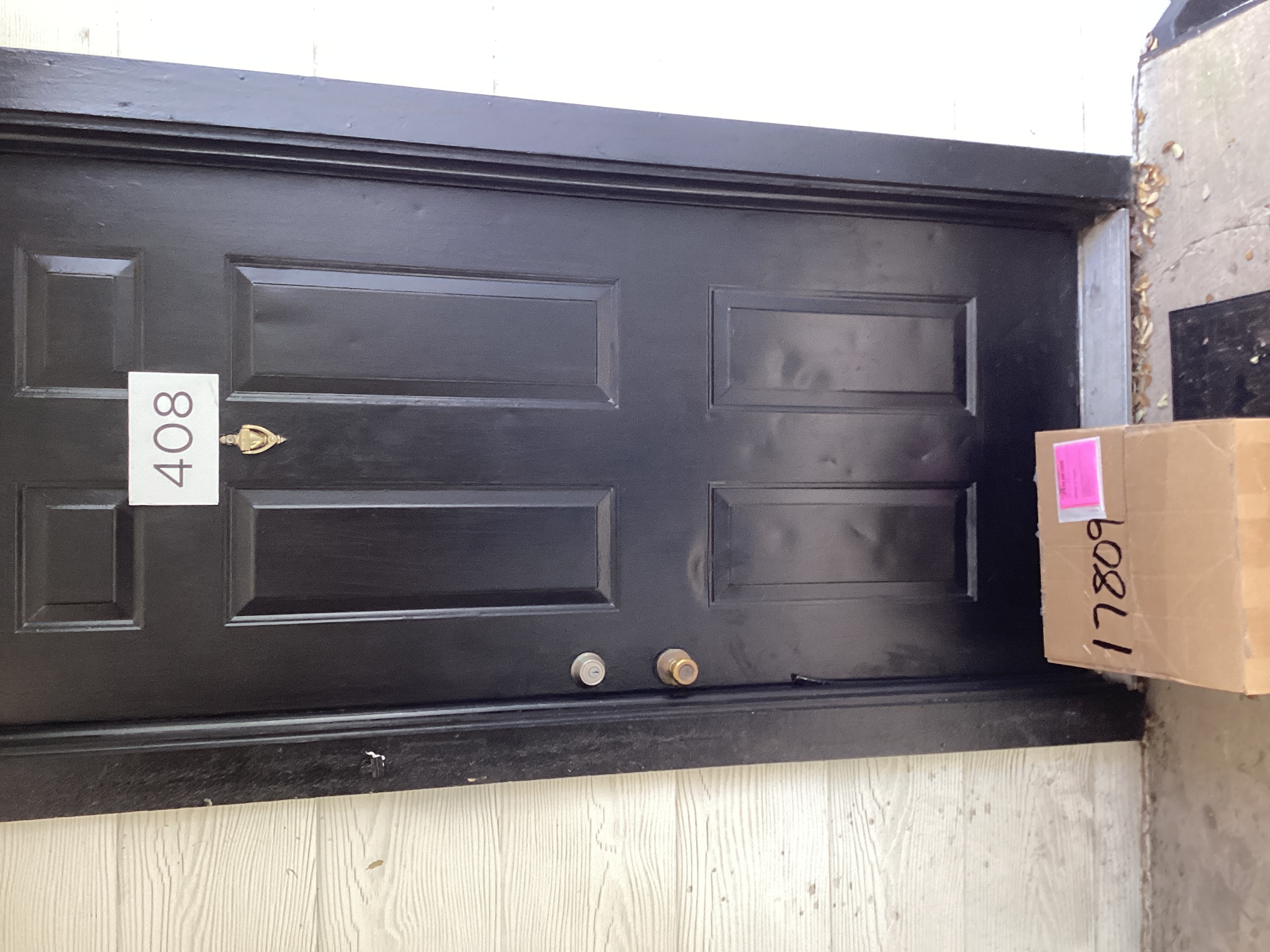 After entrance pass the bridge first street on left 2nd floor there’s a black Matt by the door.
