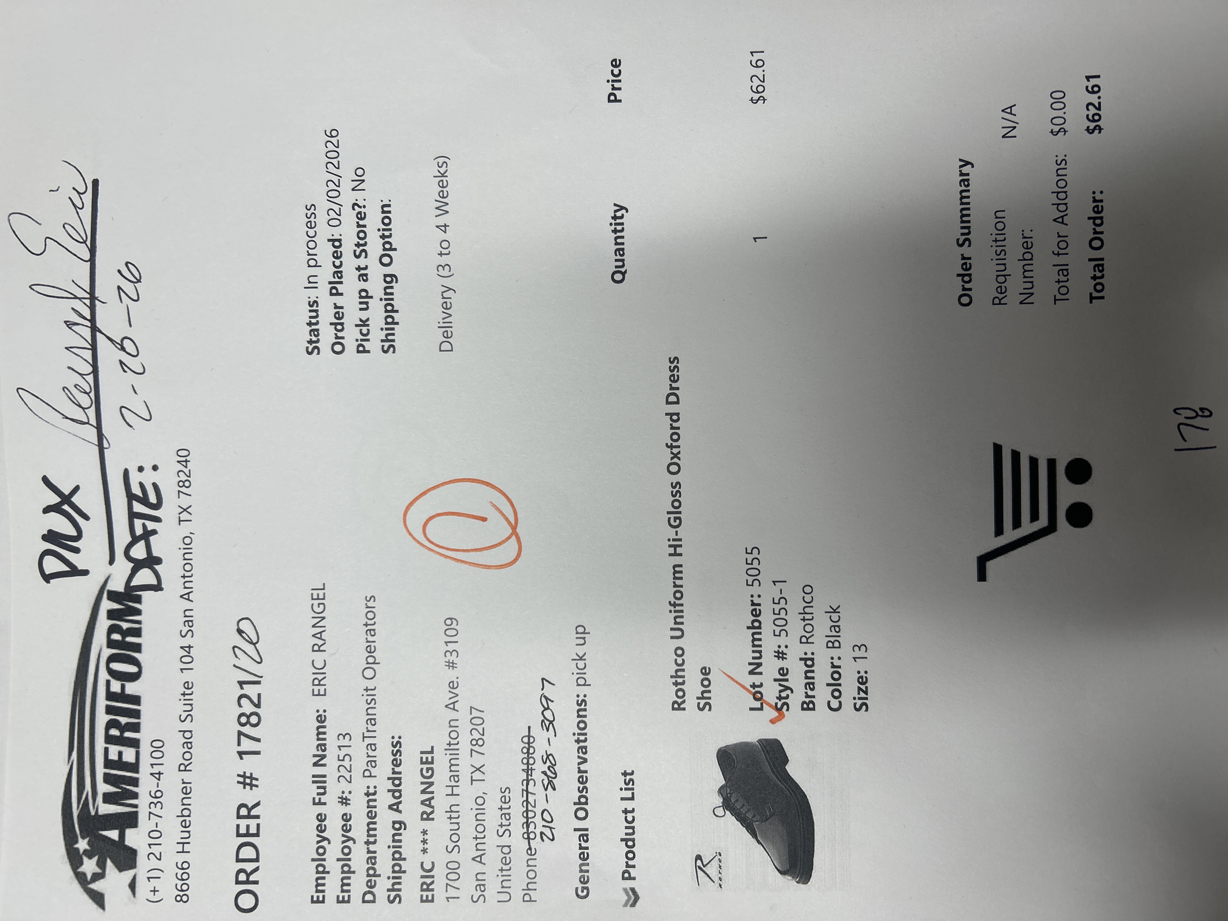 Order # 17821