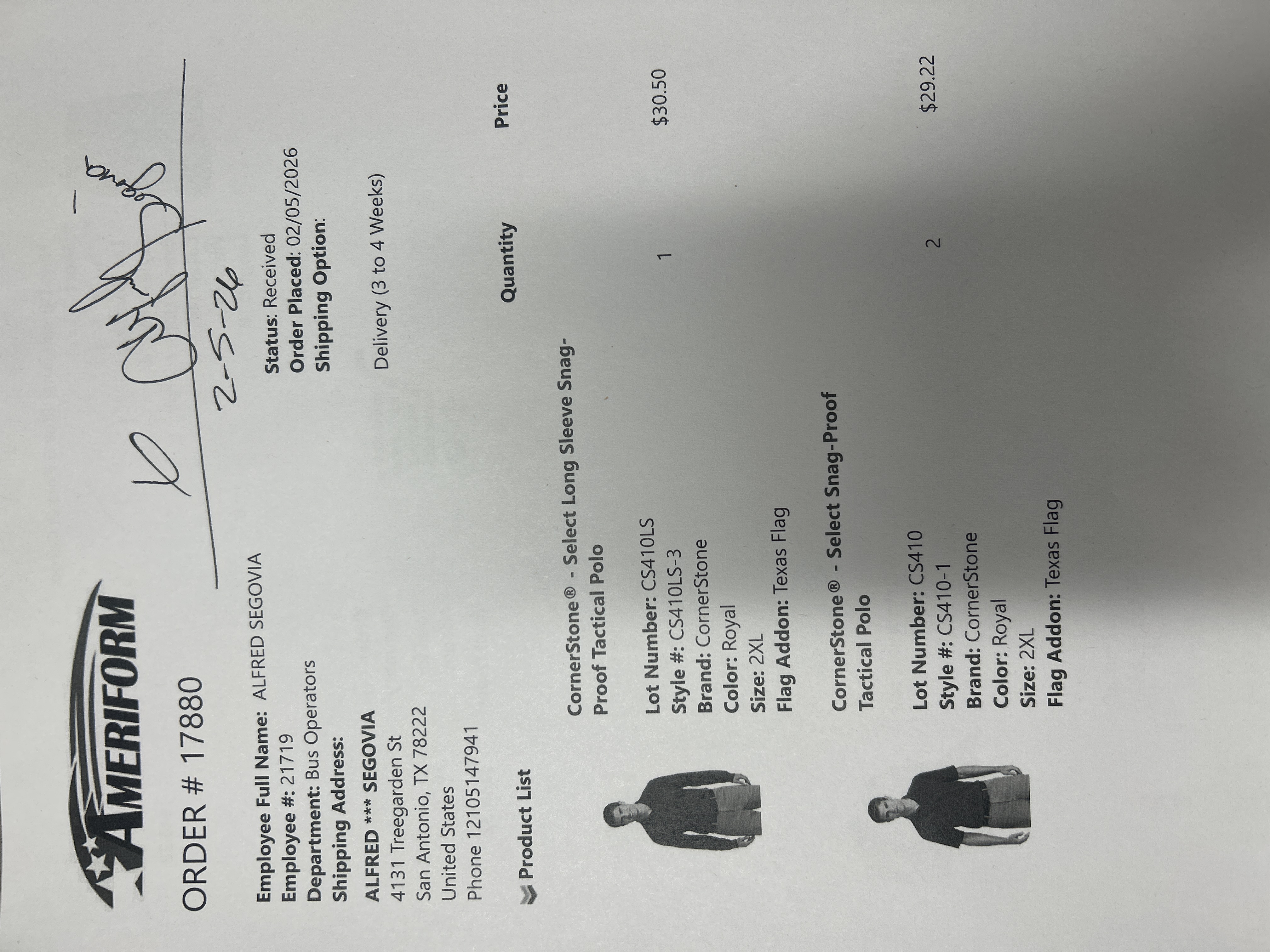 Shipping Address: