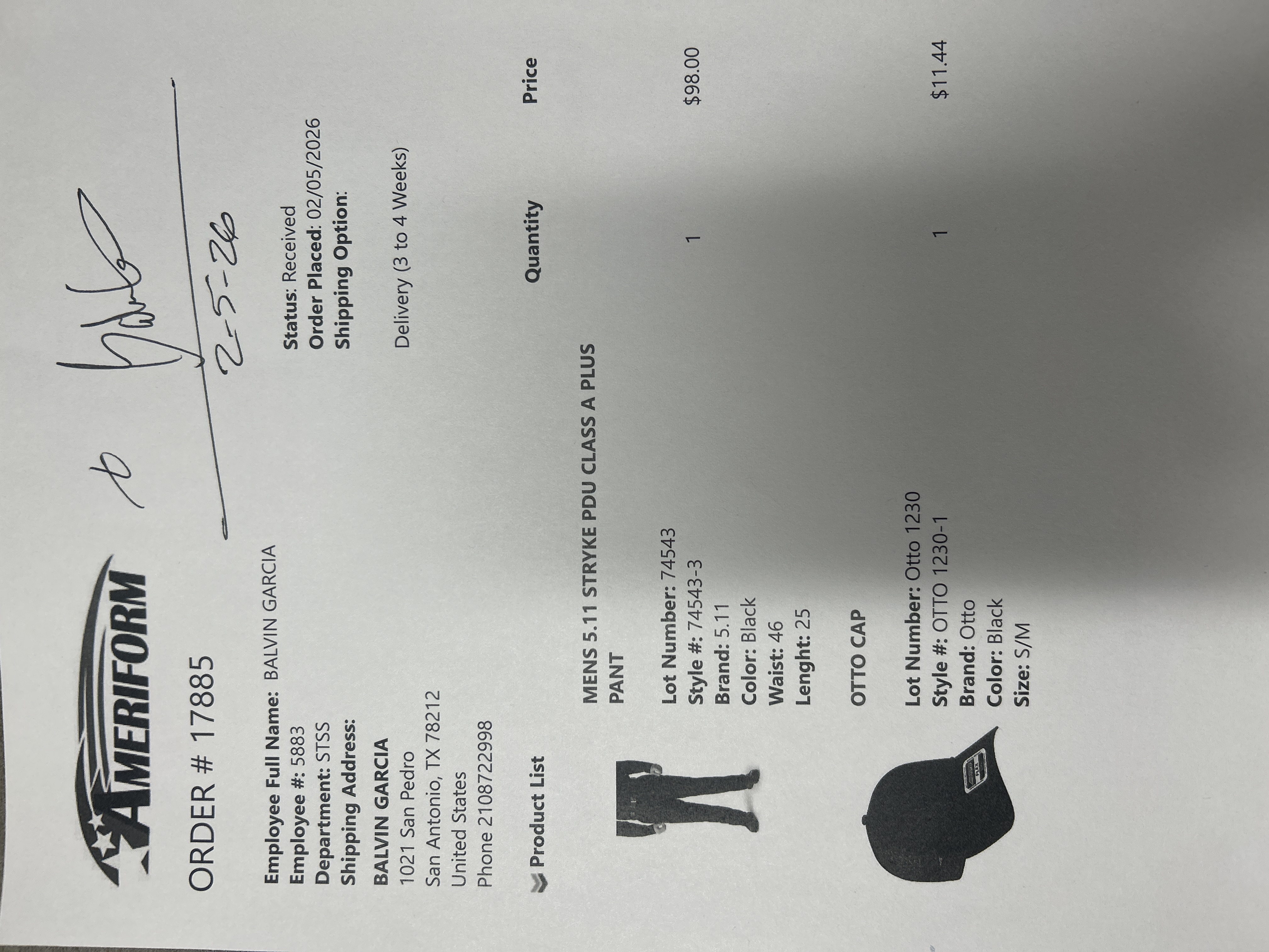 Order # 17885