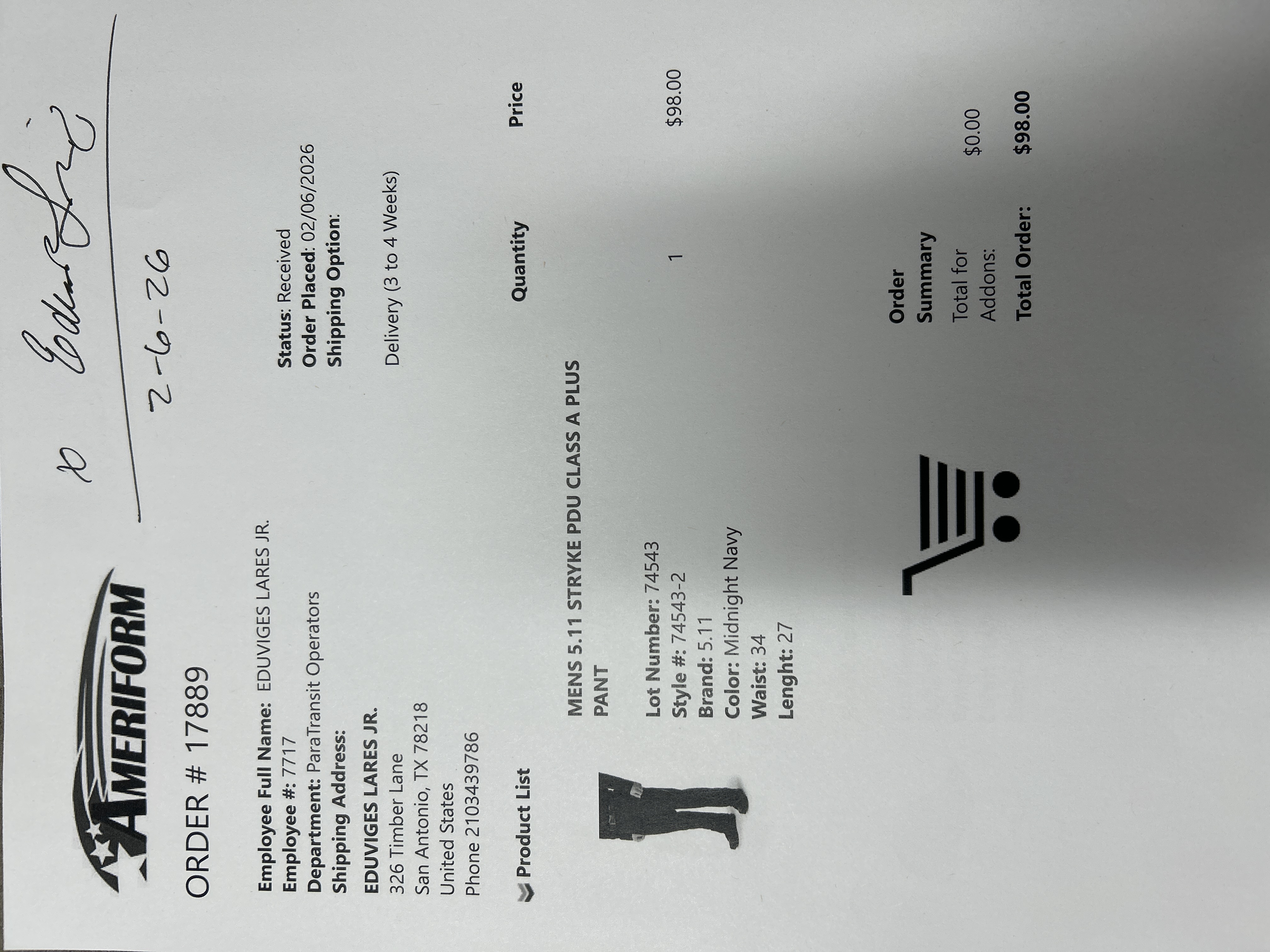 Order # 17889