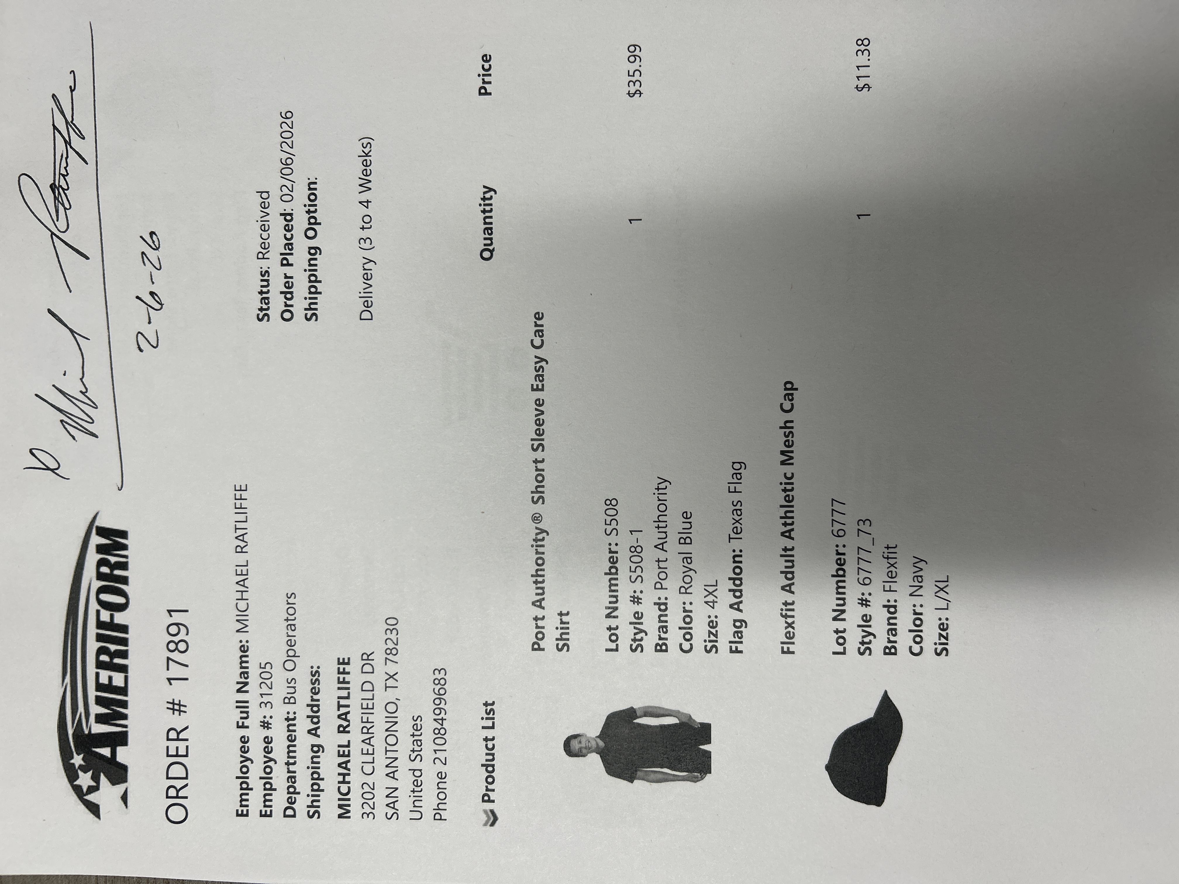 Order # 17891