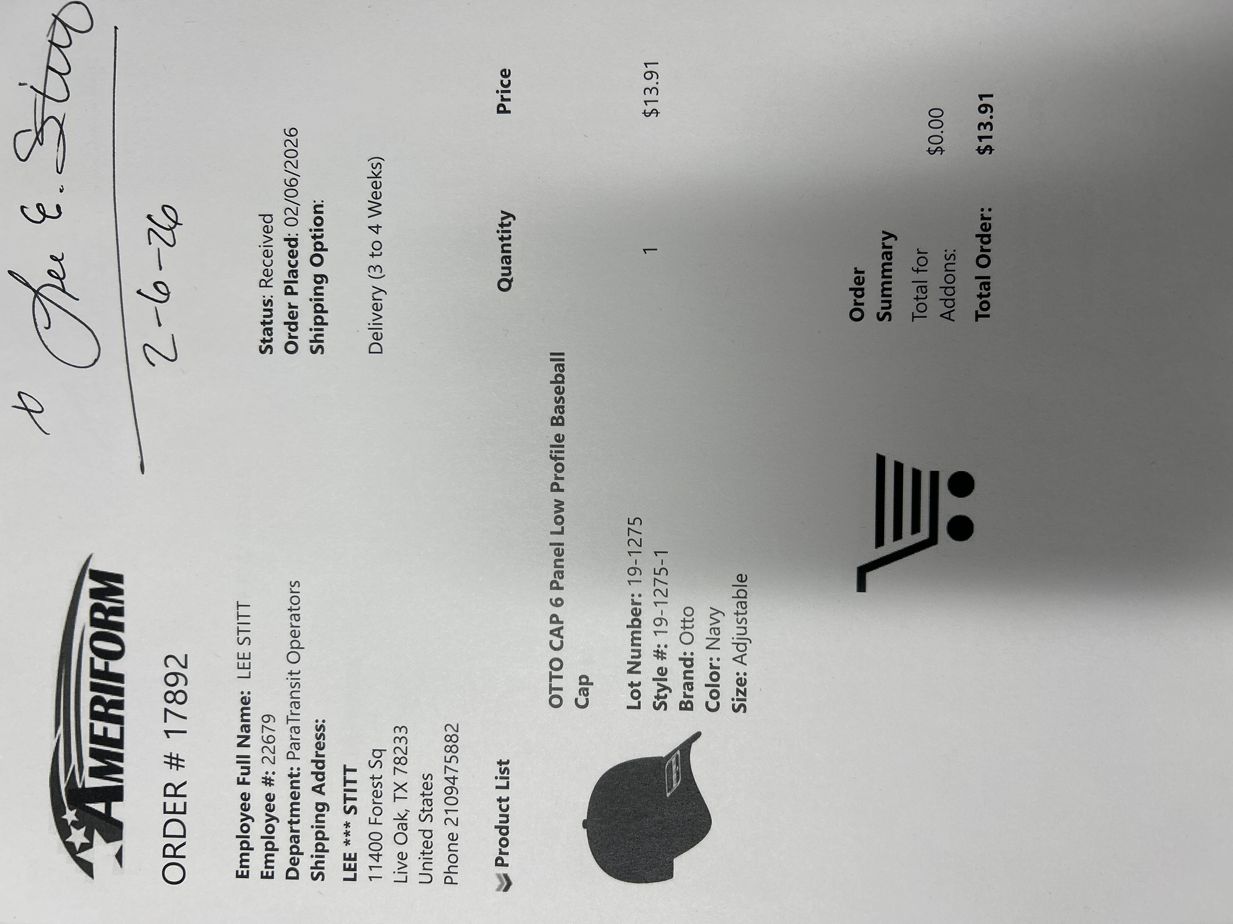 Order # 17892