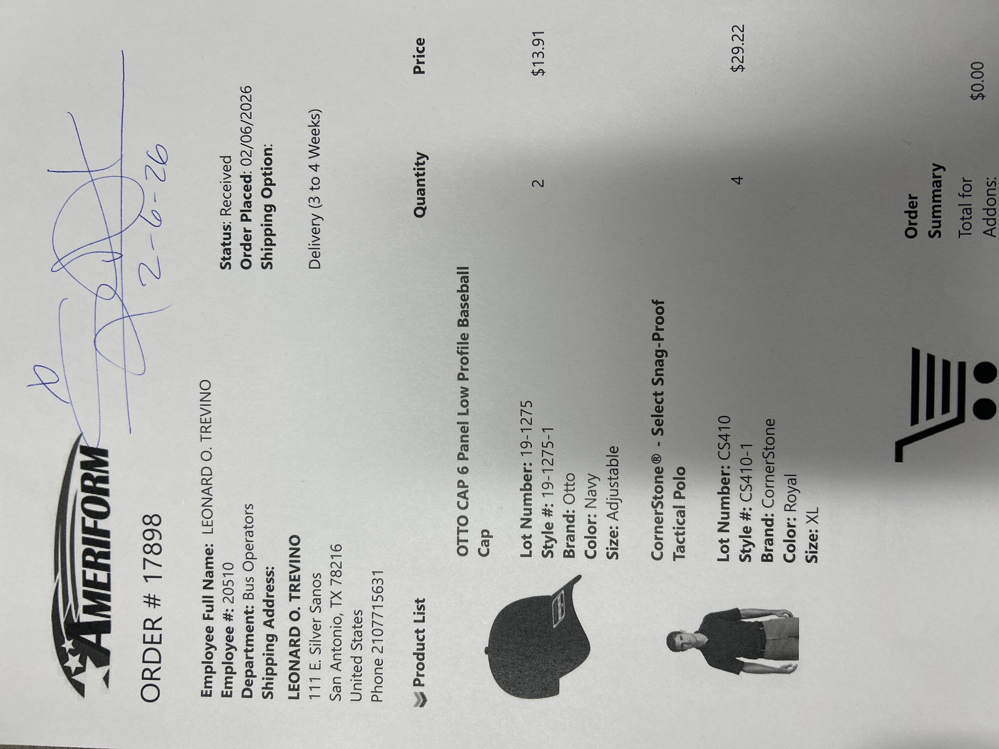 Order # 17898