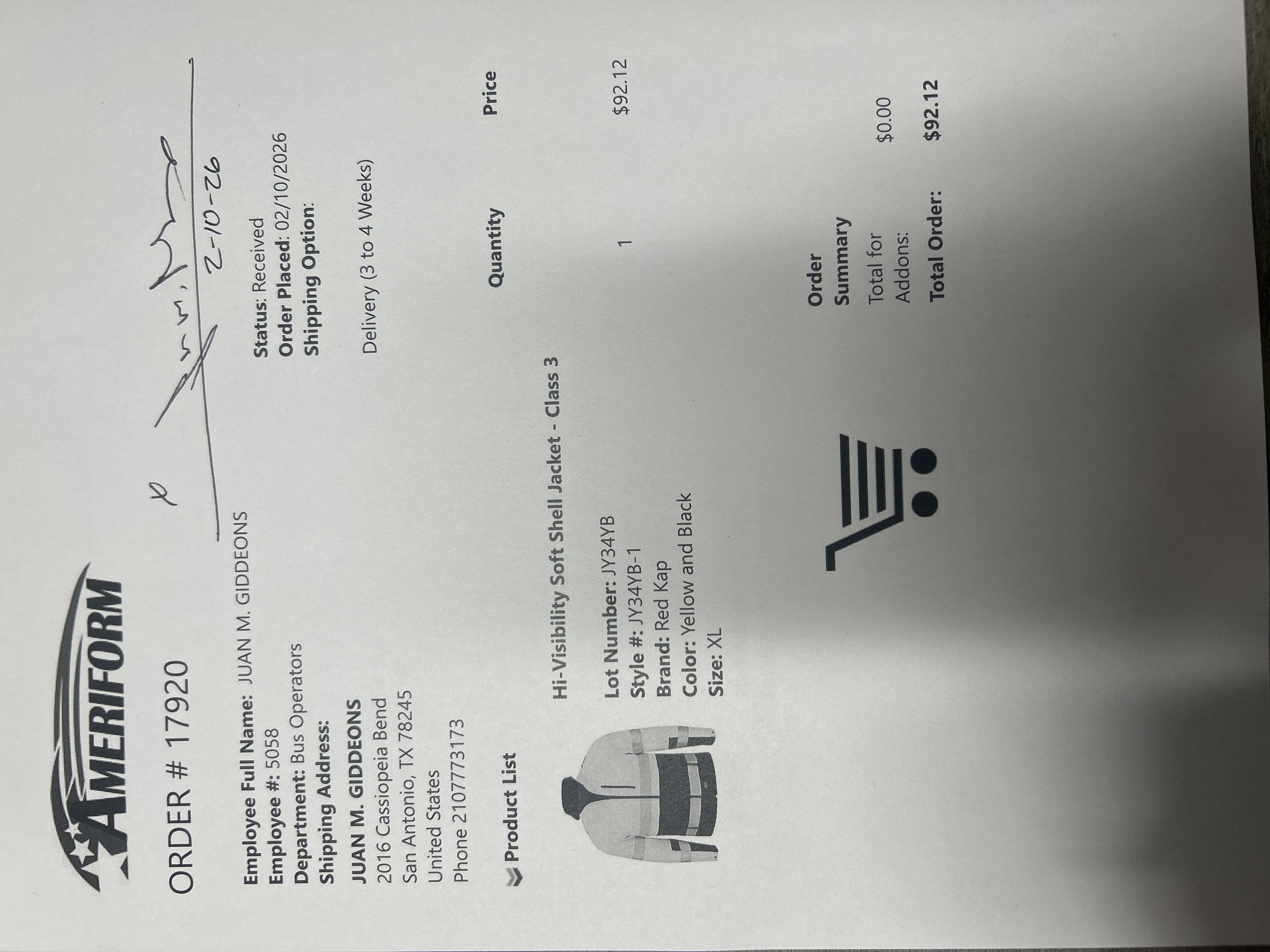 Order # 17920