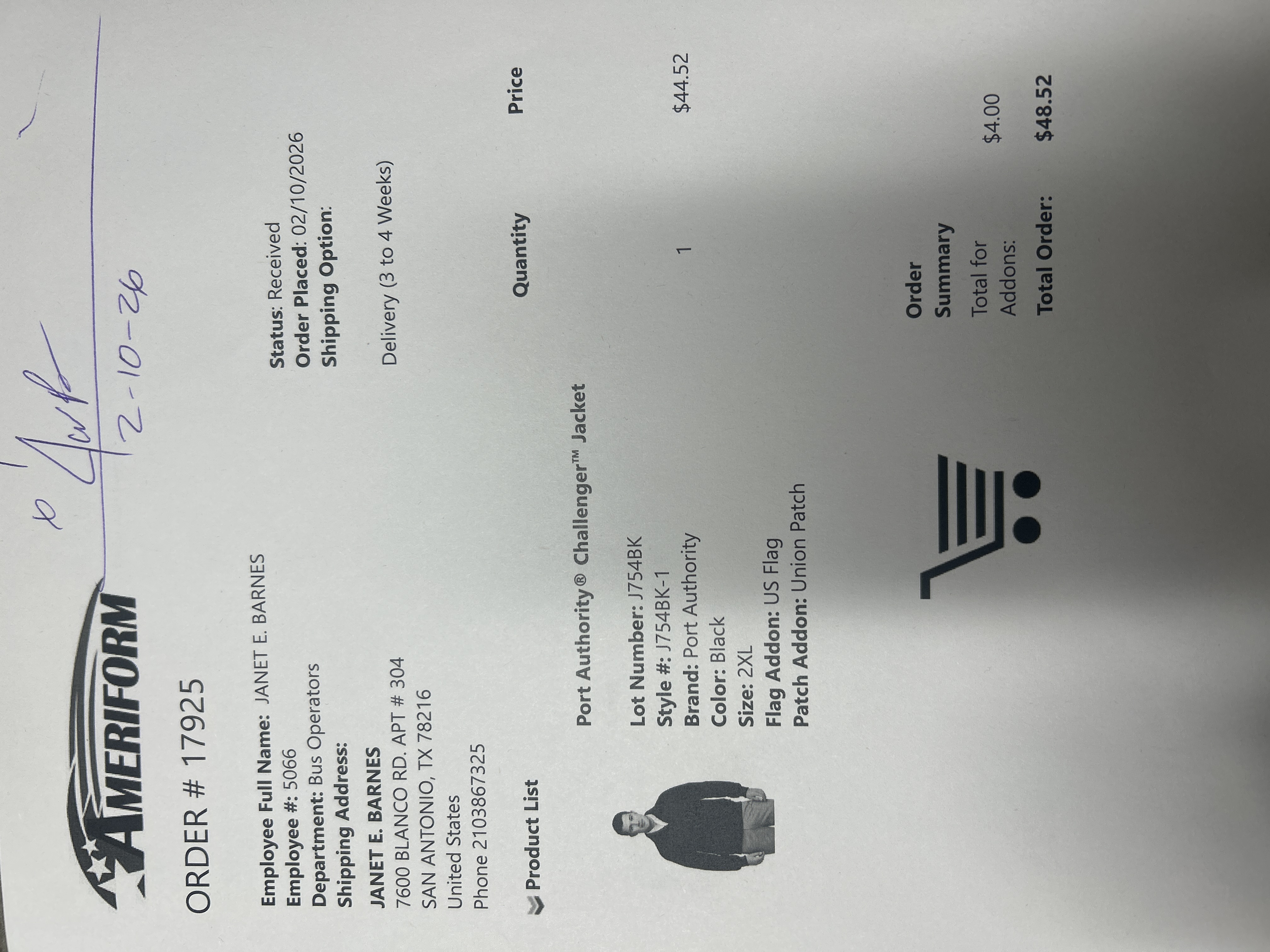Shipping Address: