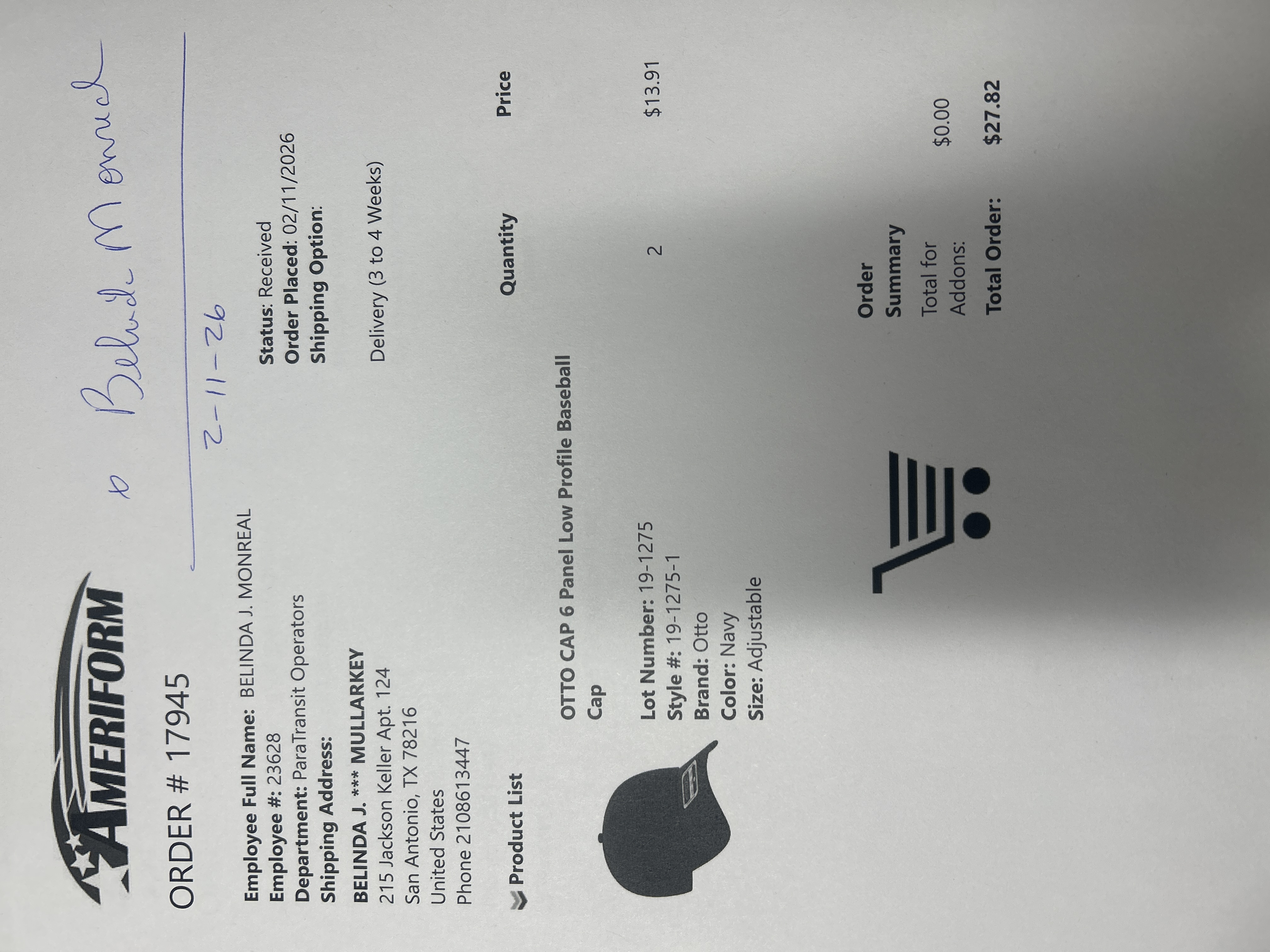 Order # 17945