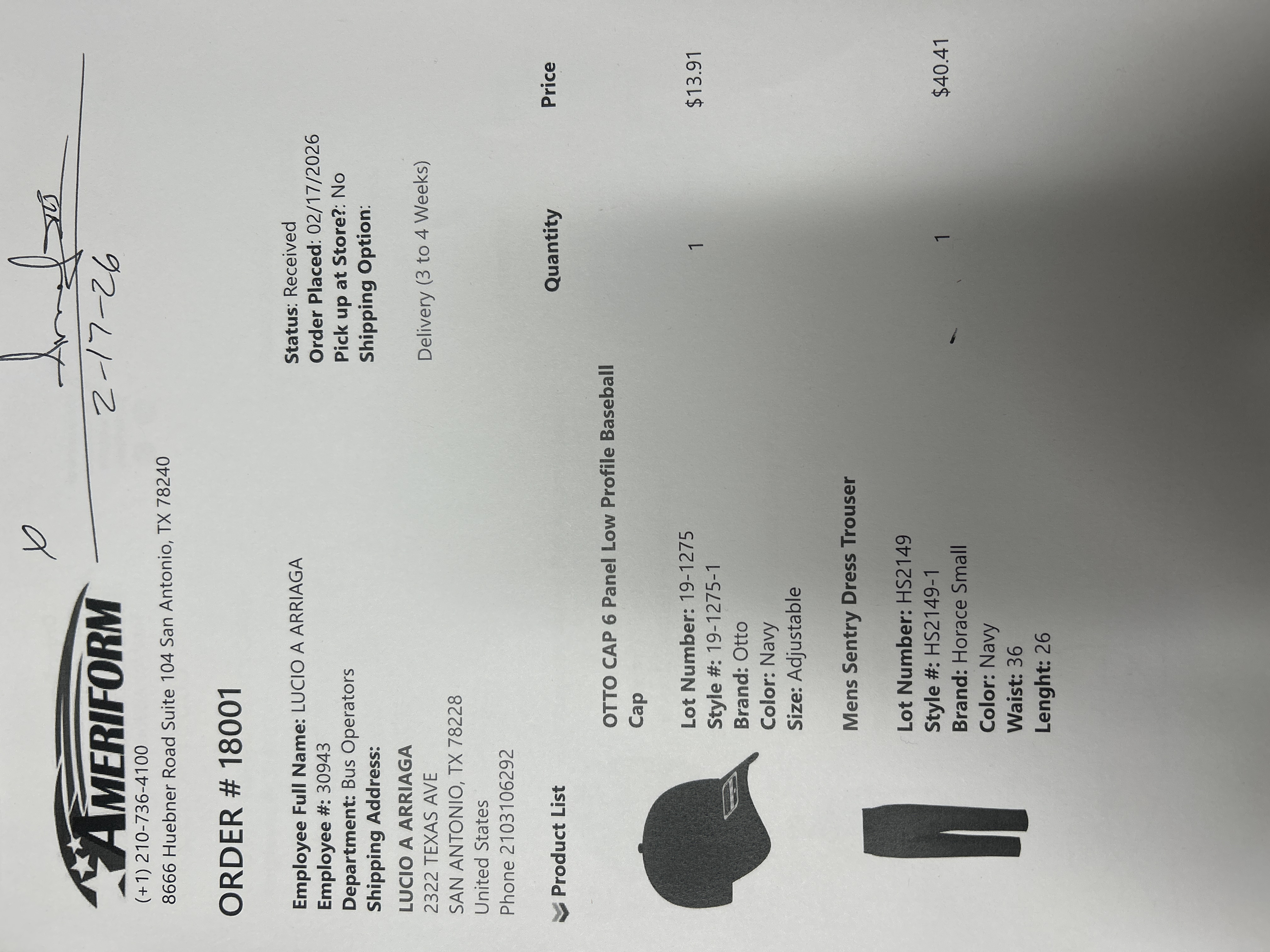 Order # 18001