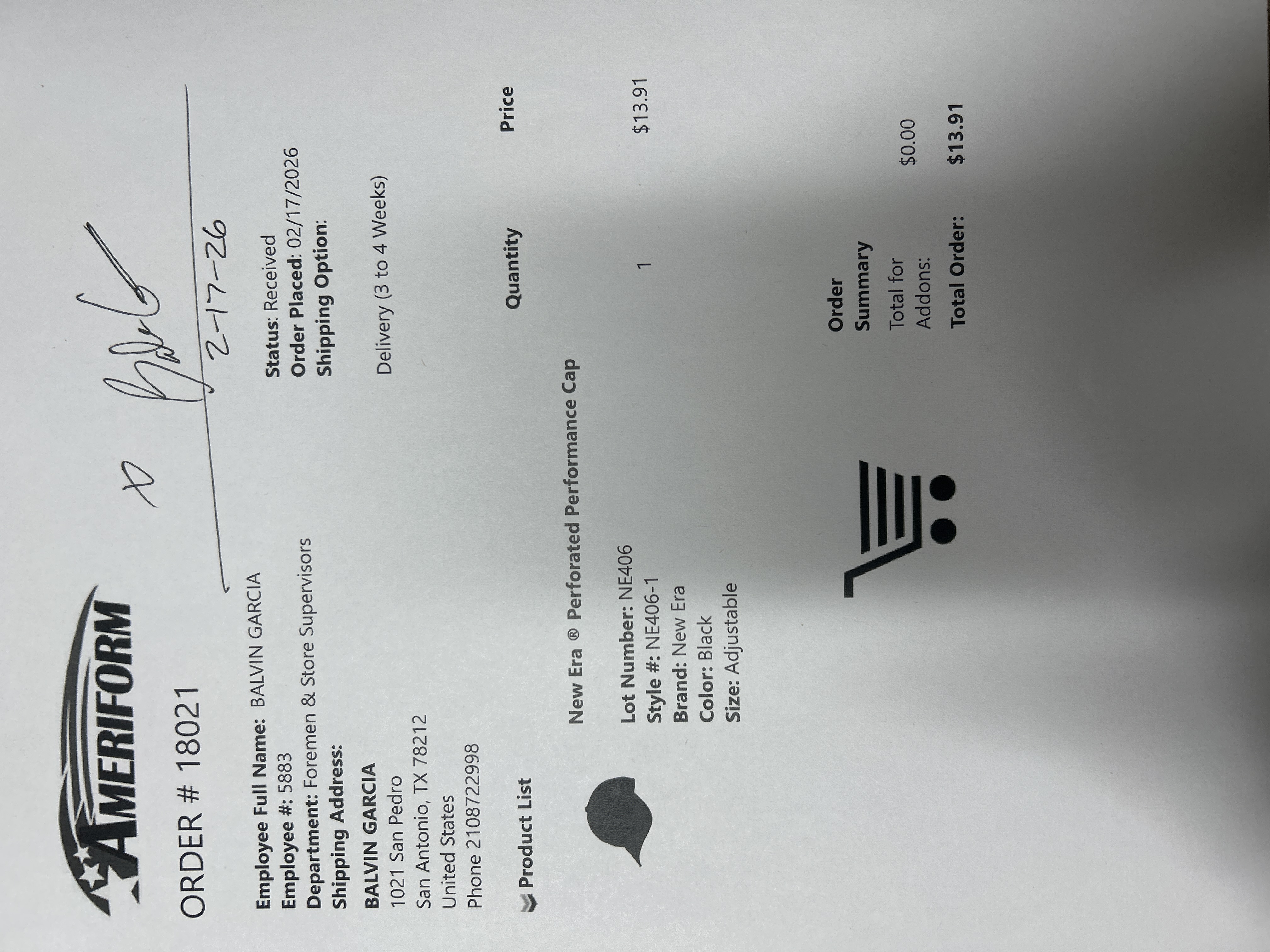 Order # 18021