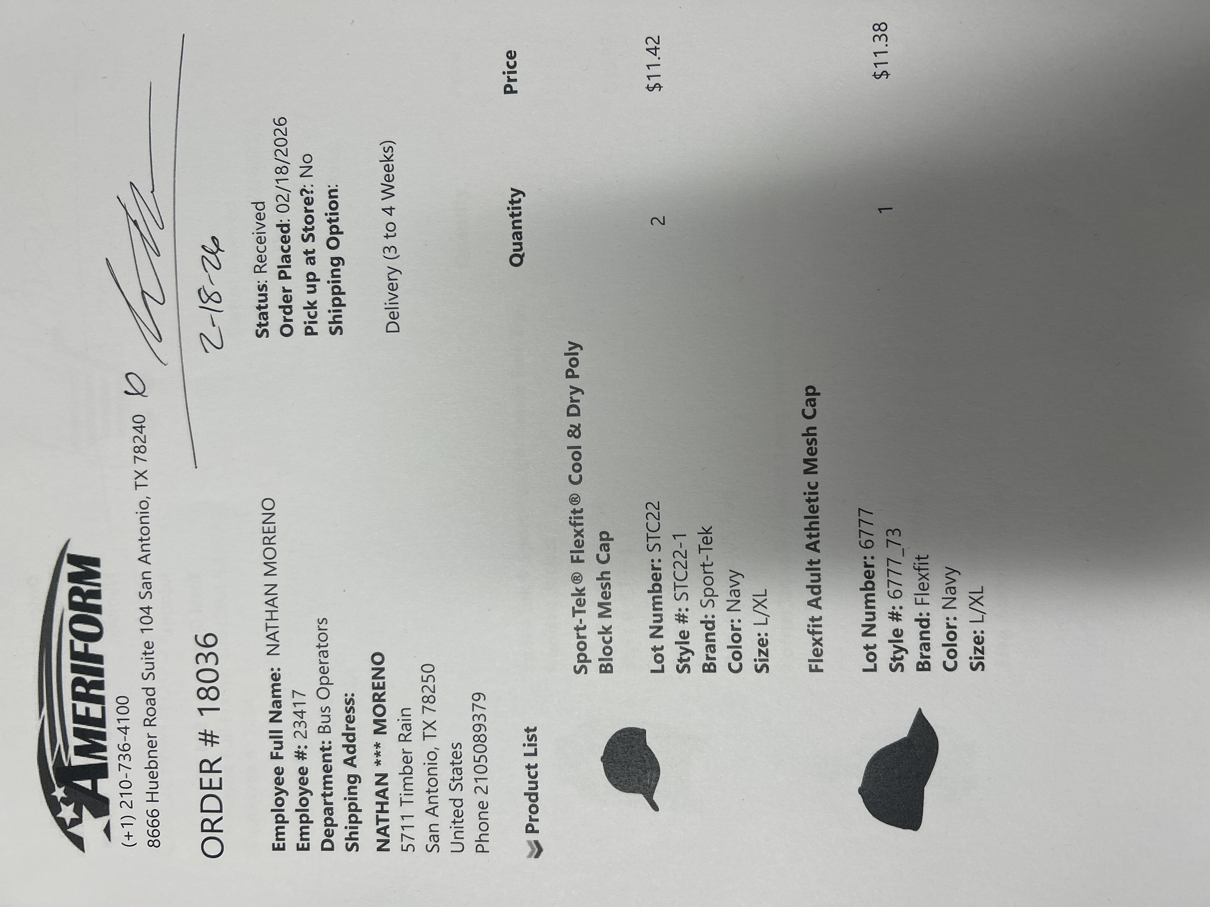 Order # 18036