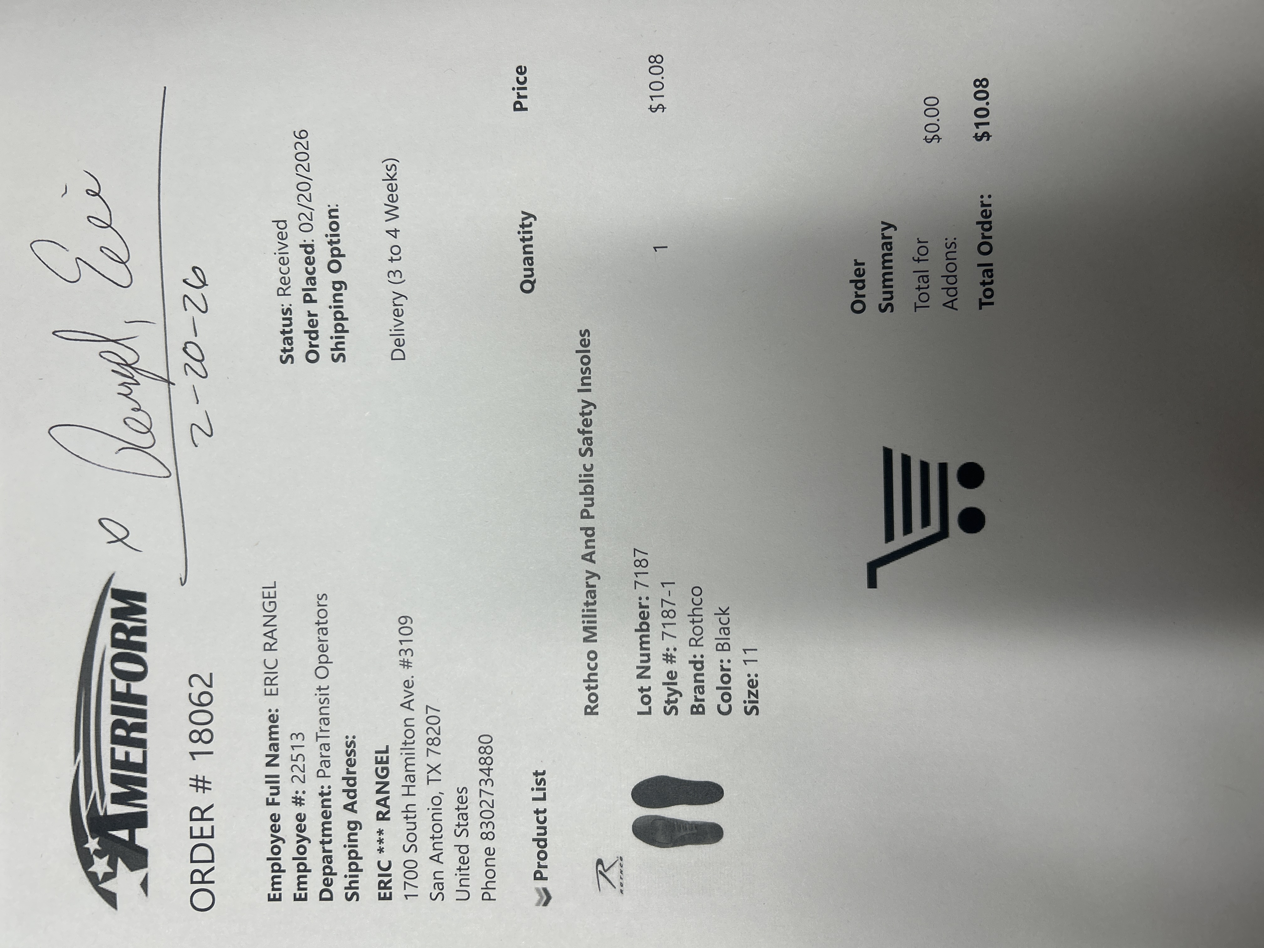 Order # 18062