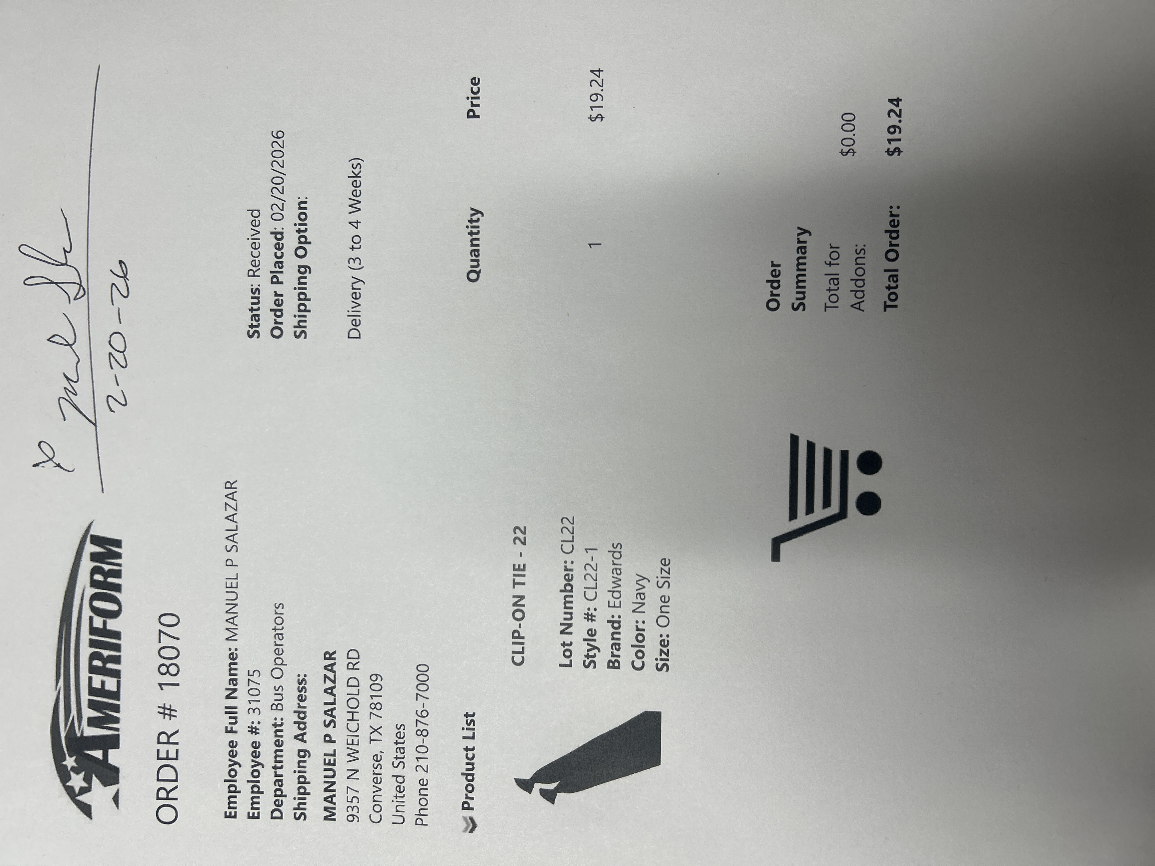 Order # 18070