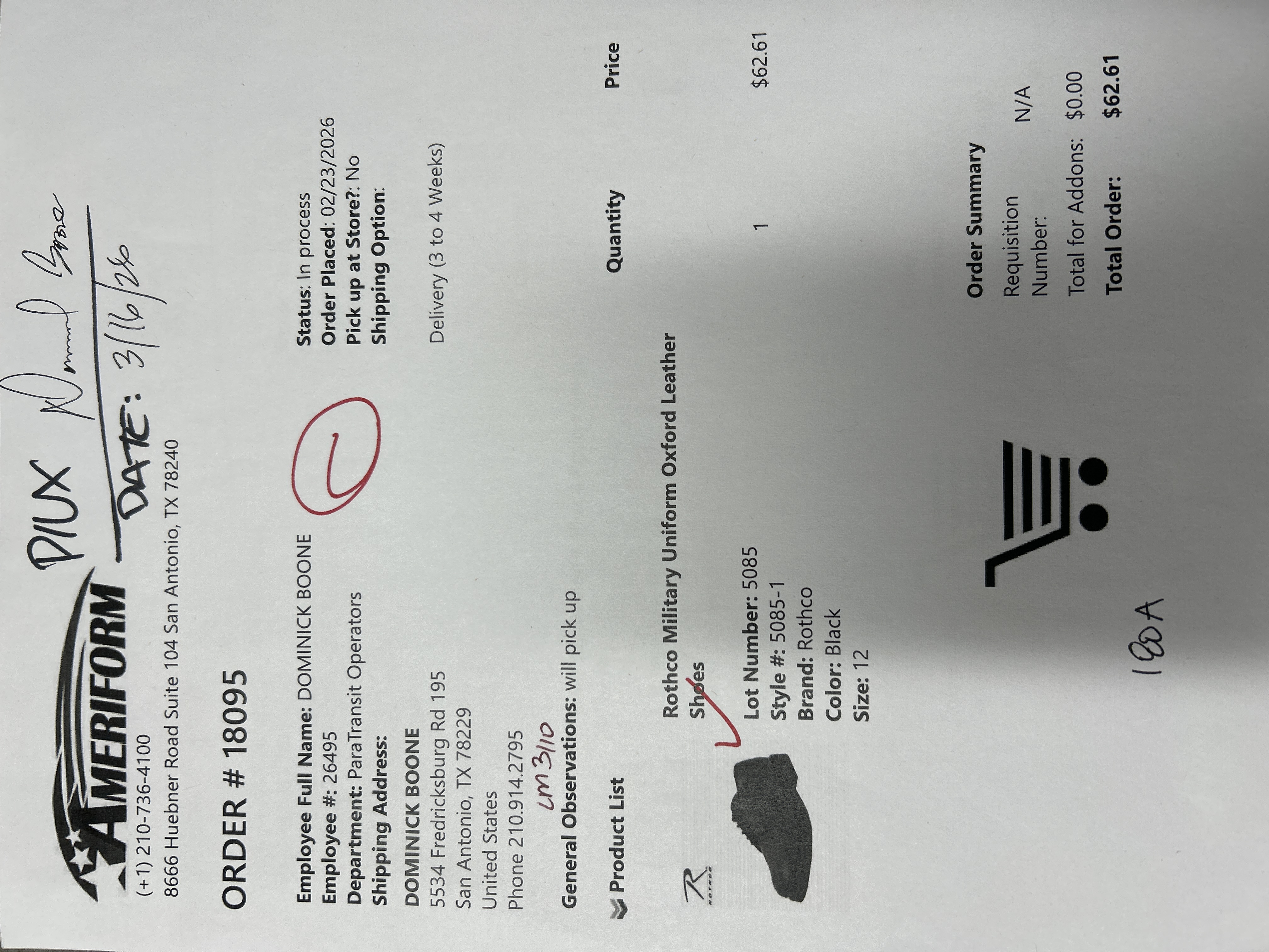 Order # 18095