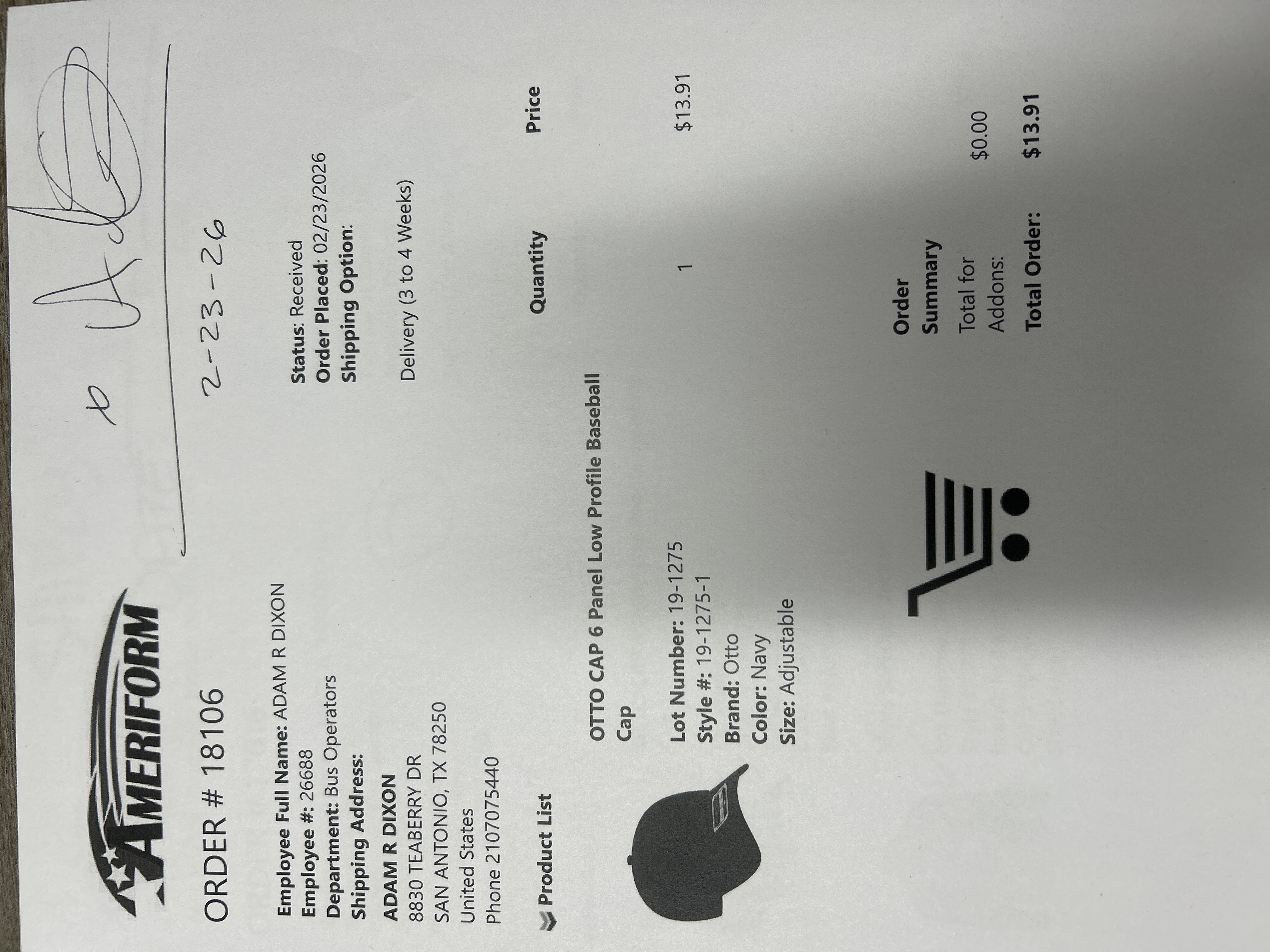 Order # 18106