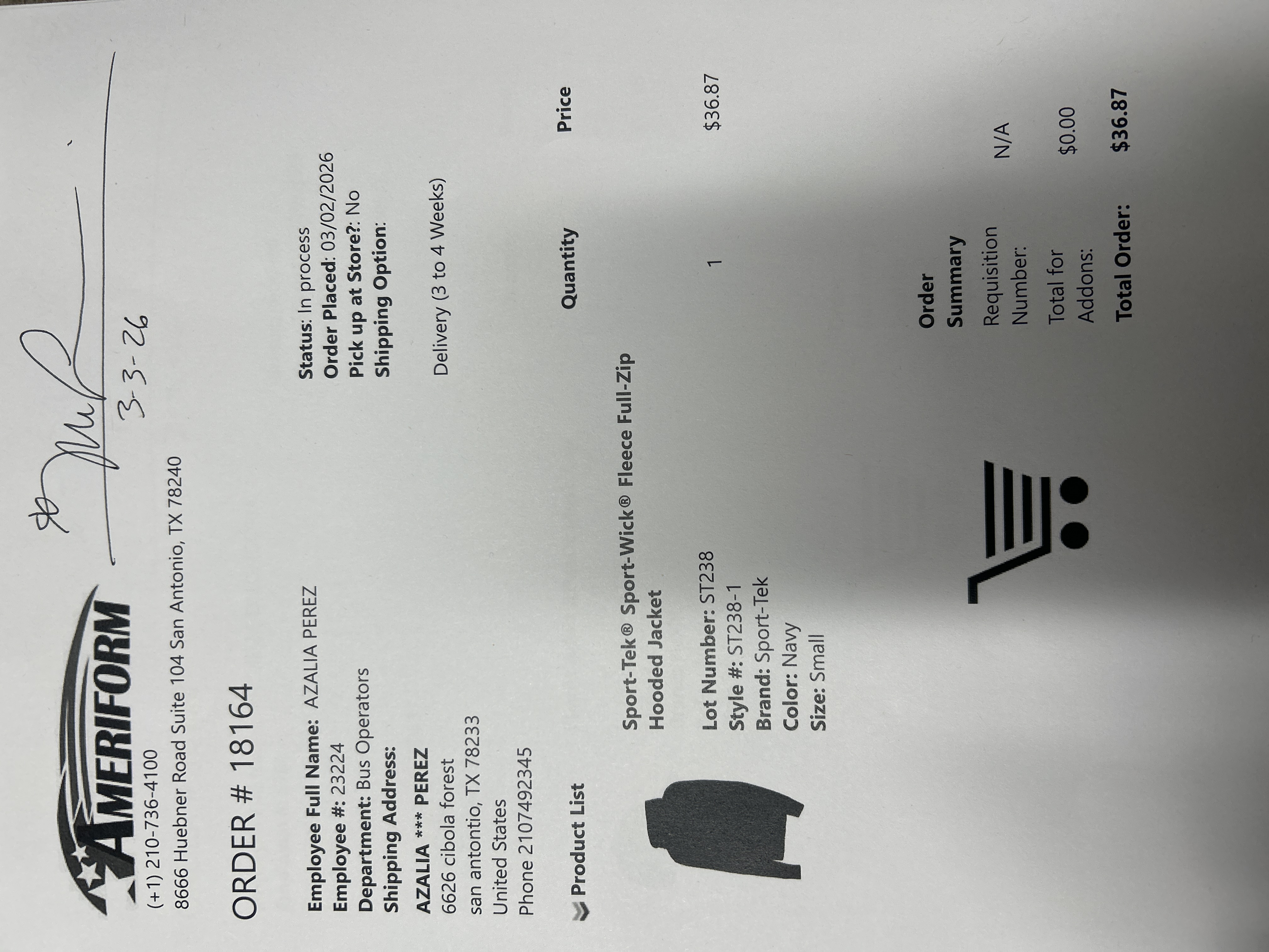 Order # 18164