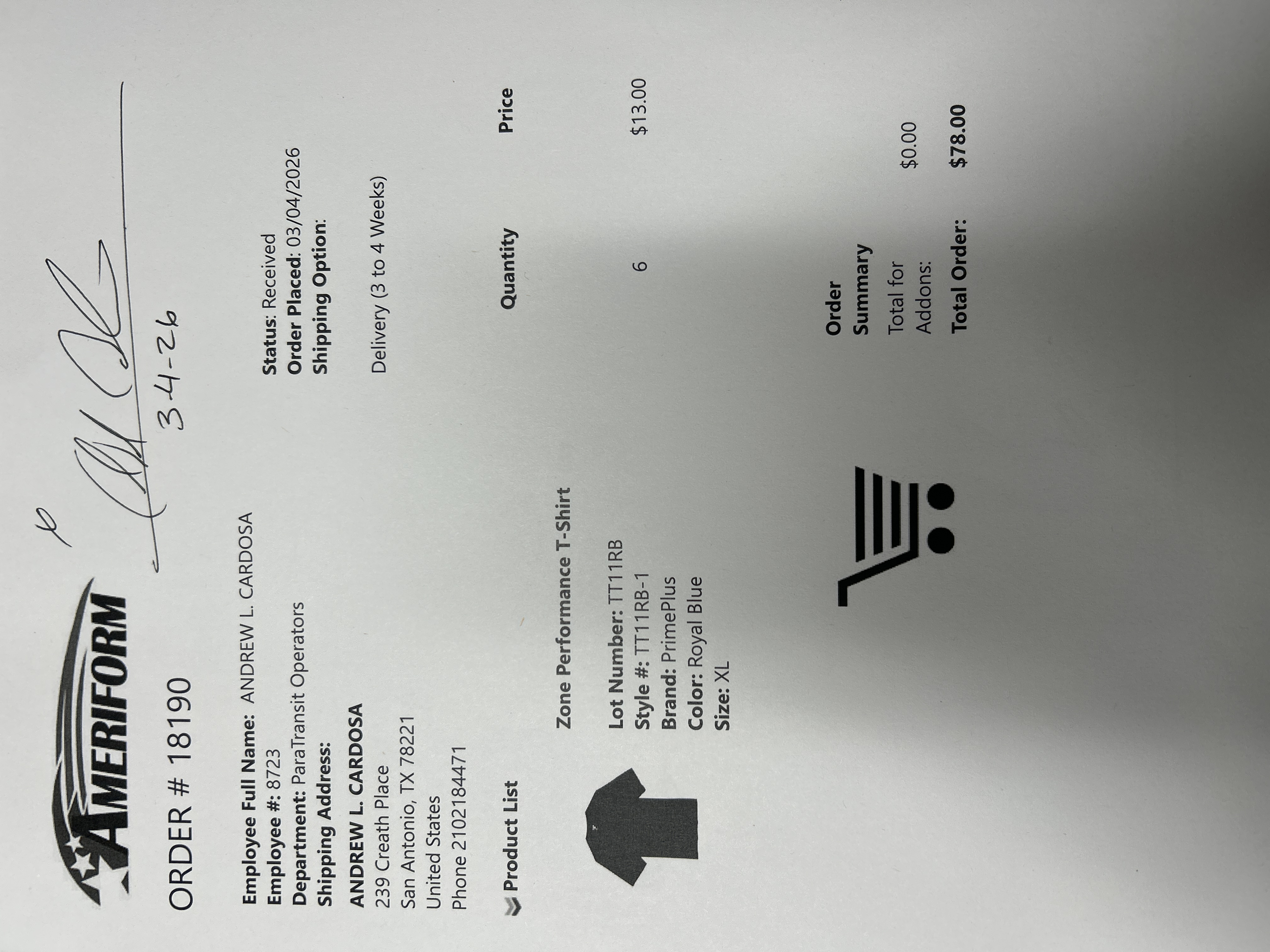 Order # 18190