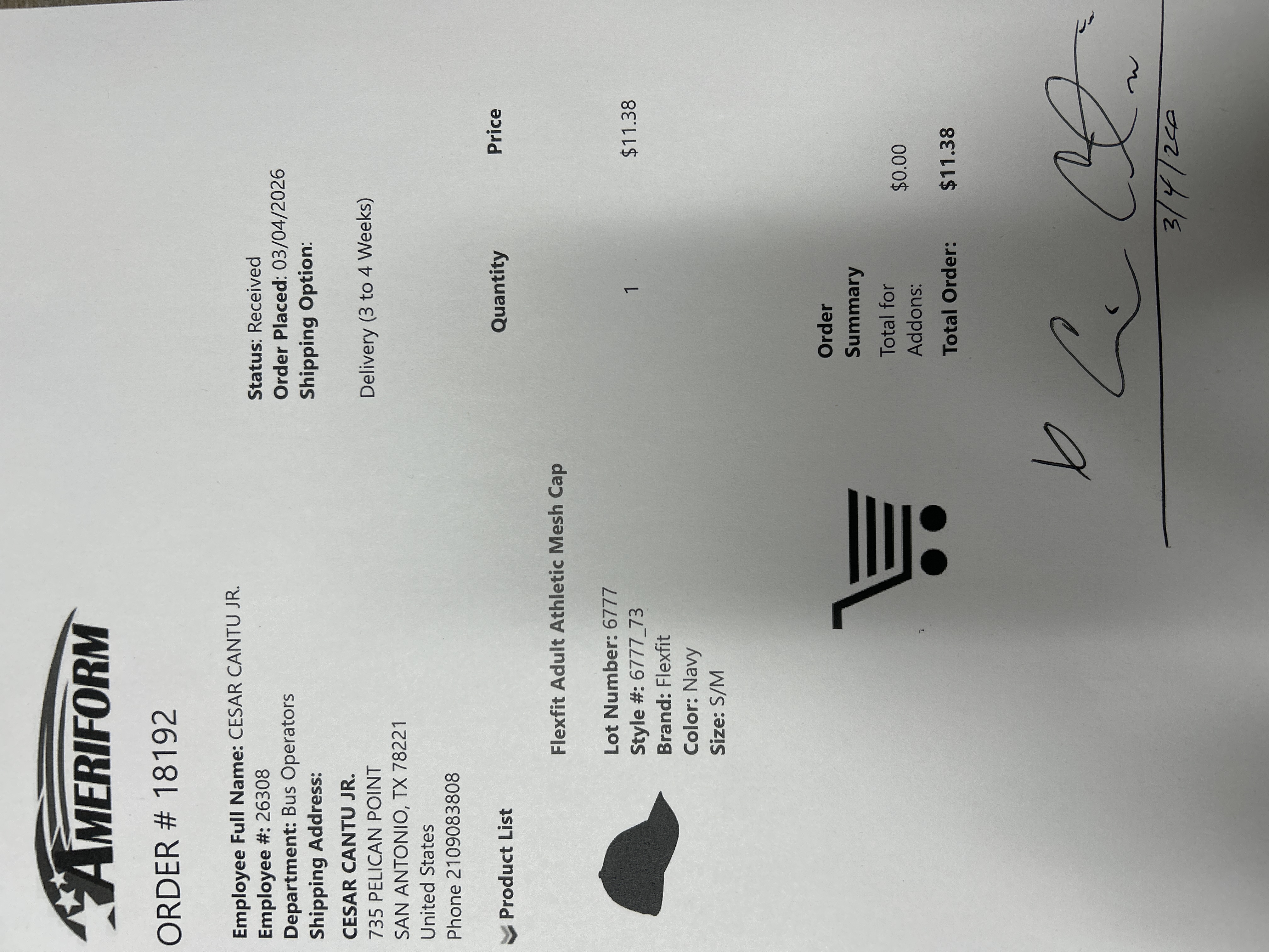Order # 18192