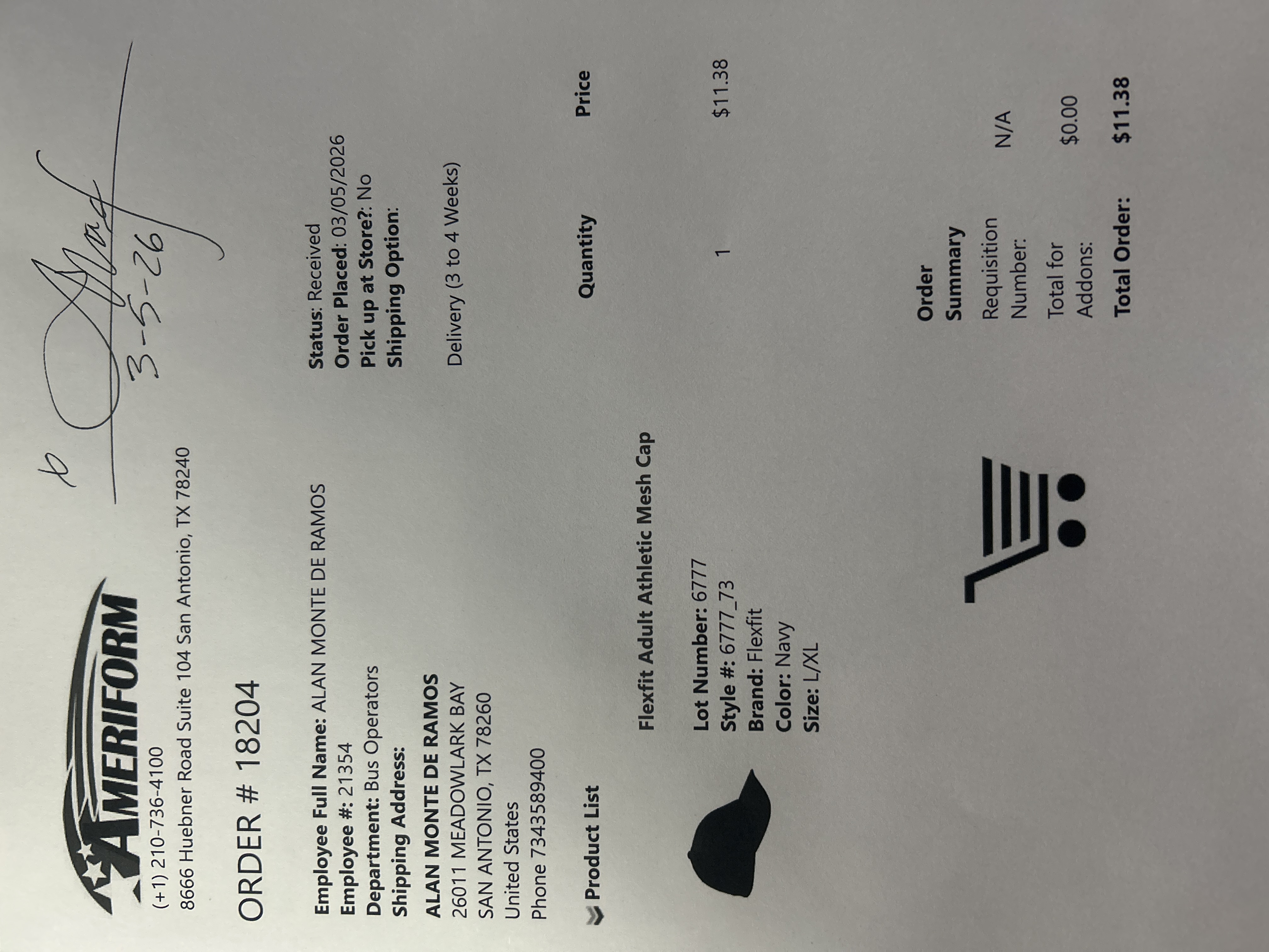 Order # 18204