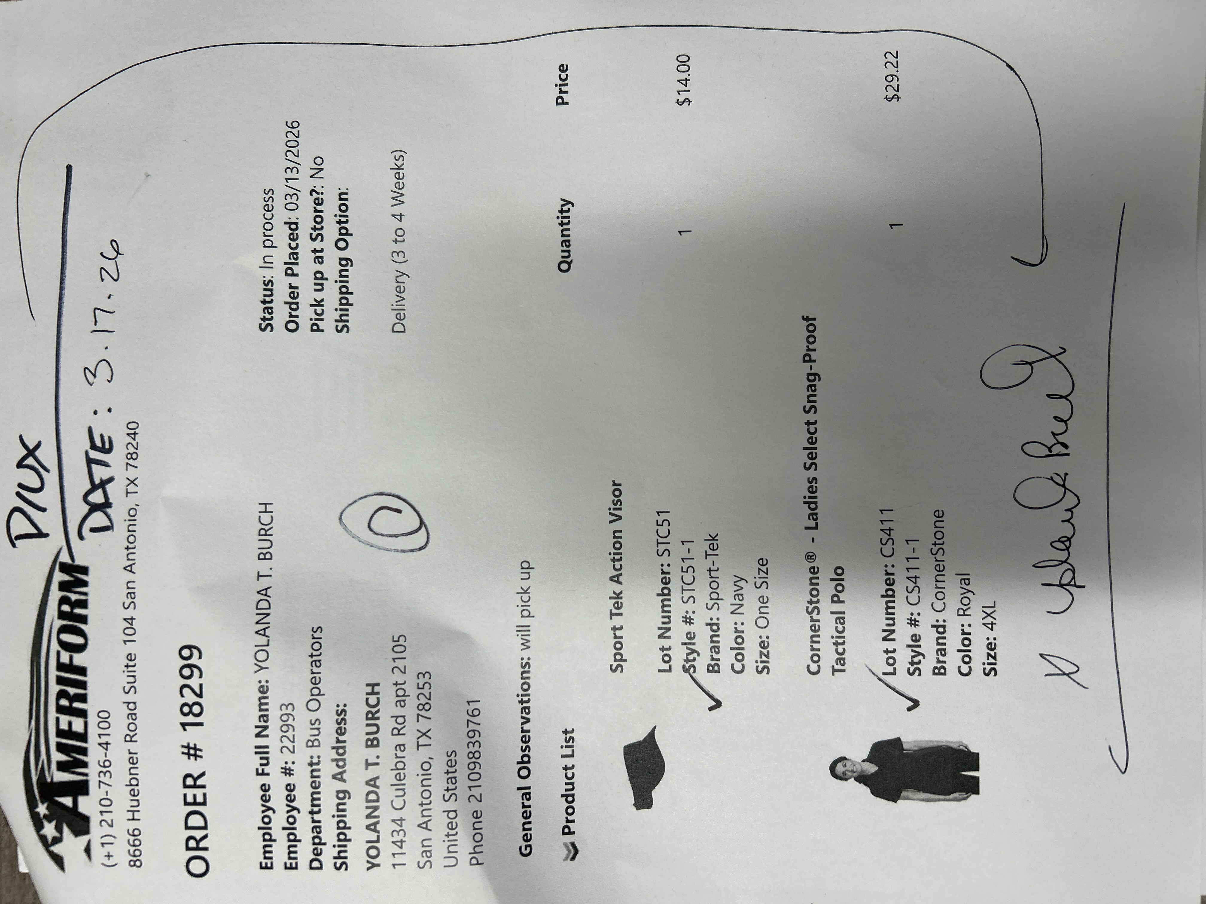 Order # 18299